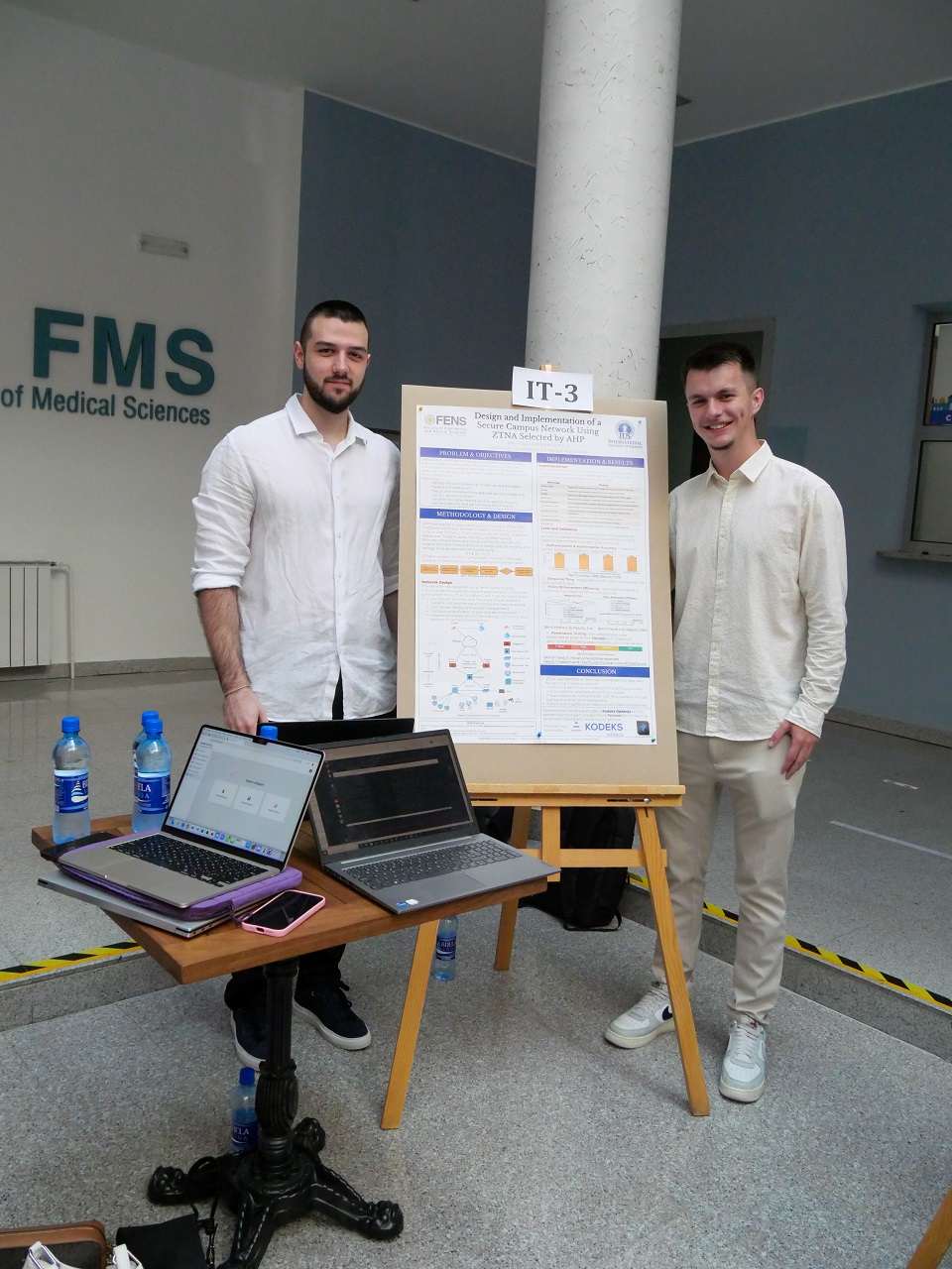 The Best Poster Award was given to the project “Zero Trust Network Architecture (ZTNA) Implementation for Campus Networks”, developed by Edin Klapić and Haris Islamović from the Software Engineering program, under the mentorship of Dr. Amal Mersni and Mr. Muris Čeljo from Kodeks. The award was determined by a jury of industry representatives, based on a shortlist of nominated projects selected by faculty members.